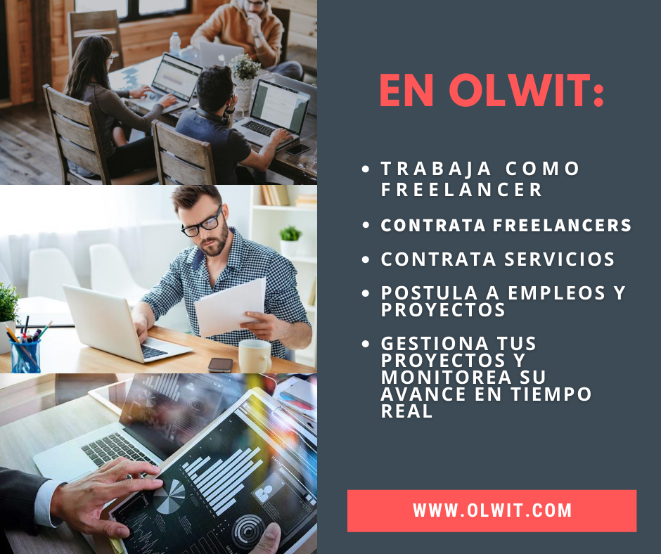 Contamos con una comunidad de profesionales expertos en Marketing Digital, Programación, Diseño Gráfico, UI/UX, Data Science, entre otros. Olwit.com es nuestra garantía para el éxito de tu proyecto.